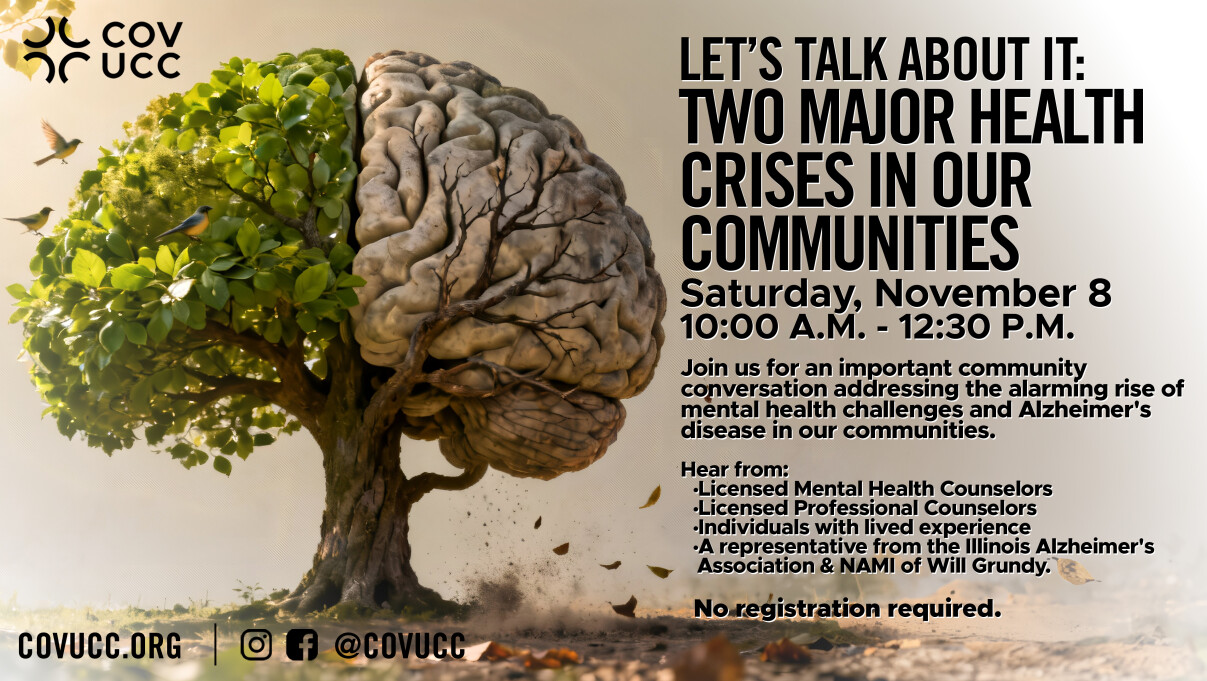 Location: Covenant United Church of Christ 1130 E. 154th Street, South Holland, IL Join us for an important community conversation addressing the alarming rise of mental health challenges and Alzheimer's disease in our communities.