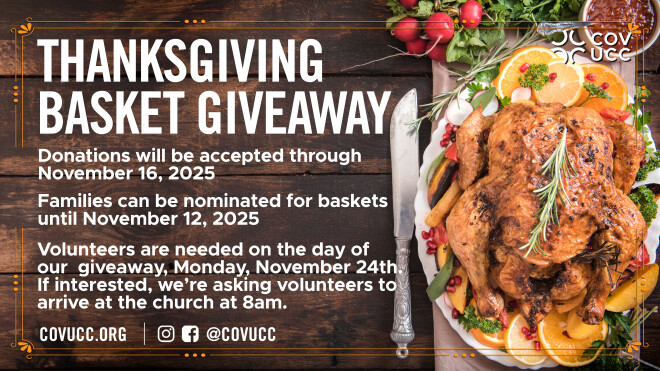 Holiday Mission Thanksgiving Basket Food Donation Covenant’s Thanksgiving Basket Giveaway has been a tradition in our congregation for many years. Each year...