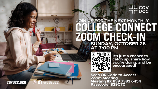 Hey family! Join us for our first College Connect Zoom Check-In Sunday, September 28 at 7:00 pm. It’s just a chance to catch up, share how you’re doing, and be...